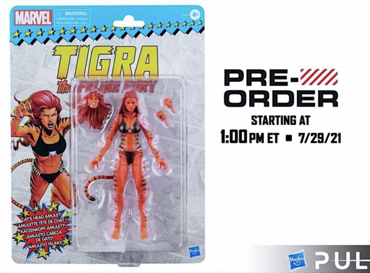 - Tigra – Actual figure, 100% new. 2 heads and 2 set of hands. Fan Channel exclusive.