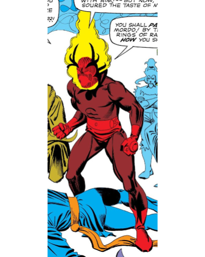 Family dinner must be awkward for Dormammu, when your niece is married to your greatest enemy. Introduced in Strange Tales #126 (1964) by Stan Lee and Steve Ditko, this Lord of the Dark Dimension has been trying to enter into the prime reality for centuries. He was kept at bay for many years, being defeated by the Ancient One. He would soon gain a disciple in the form of Baron Mordo who pushed him to kill the Ancient One. However, the Ancient One was saved by Stephen Strange, who the Ancient One took as his disciple. Dr. Strange would eventually move to New York and would battle Dormammu many times.