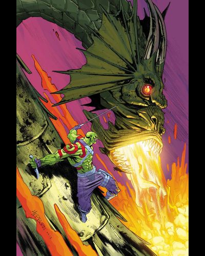 His race may be why many cultures have depiction of dragons. Introduced in Strange Tales #89 (1961) by Stan Lee and Jack Kirby, Fin Fang Foom hails from an alien races that appear similar to predictions of legendary dragons. FFF and his crew crashed land in ancient China. His crew went to prepare Earth for their invasion while FFF waited in the ship. He would appear a few times to human but would return to the ship to sleep. He eventually be captured by the Collector but was freed by Mole Man and the F4. Evenutally the man who would become the Mandarin discovered FFF’s ship and found his power rings. This ruse FFF from his slumber who agreed to work with Mandarin. However, FFF would betray Mandarin when his crew would appear to conquer the Earth, causing Mandarin to team up with Iron Man to stop them causing FFF to lose his body.