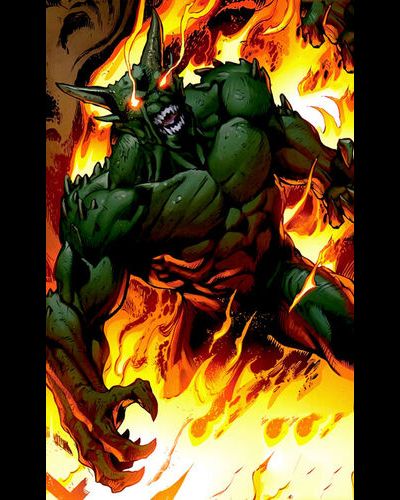- This is the Green Goblin as he usually appears in the Ultimate Universe. While the 616, and many other universe, are basically just a guy in a costume, the Ultimate Universe decided that his Goblin persona should be a big Hulk like form that he could transform into. They also gave him Pyrokinesis which resulted in him having flames over his body.