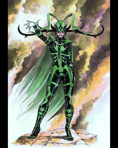 Hela is one of many characters that has a same basic design, which has been done differently by different artists over the years. Most of the time, she is seen in a full body outfit mostly consisting of lighter and darker shades of green nearly black in color. Other times, she is designed in a more sexier design but that usually changes back to the regular design soon after.