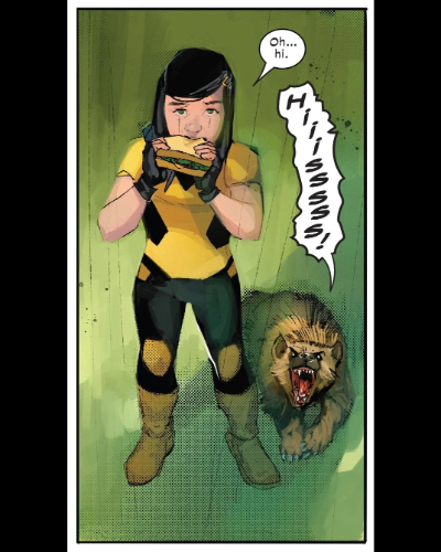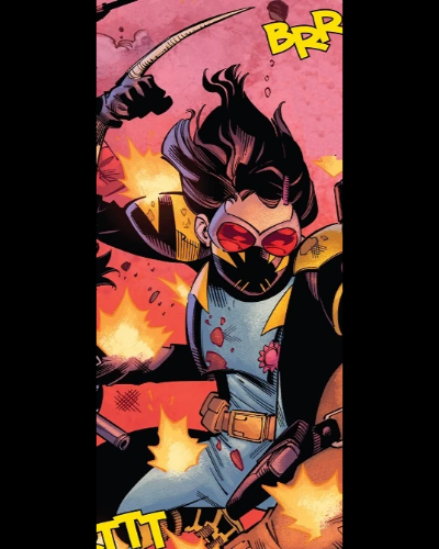 Gabby began living with Laura, adopting a wolverine that she named Jonathon. An encounter with Old Man Logan, allowed her to realise that she also had a healing factor as well as a single claw in each hand. She also became close with Deadpool, treating him like an older brother. One adventure with her older brother, Draken, saw her gain the code name Honey Badger, which she loved. She would become Laura’s unofficial sidekick, joining her when she joined with Jean Grey’s X-men. She would later join the rest of mutantkind in Krakoa, joining the New Mutants while she was there. She would witness the fall of Krakoa and would remain with Laura.