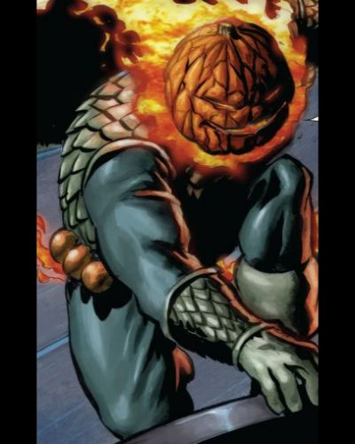 - Unusual Feature: His head is a flaming pumpkin
