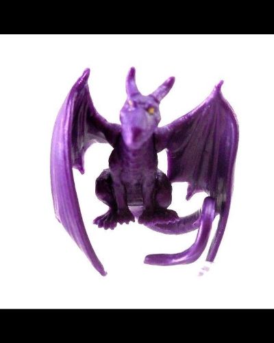 - Unusual Feature: Purple scales, wings, claws, fangs, tail. Looks like a small dragon. No visible pupils.