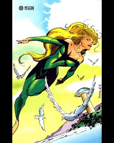 - During a time hopping adventure with Excalibur, Meggan received new costume. This would become her signature costume and to which she would return to a number of times.