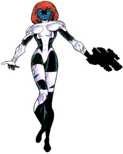 Technically, she is always naked. Introduced in Ms. Marvel #16 by Chris Claremont and Jim Mooney, Mystique is probably one of the oldest mutants on the planet, since no one knows her age. One of her ealrliest known appearances is when she met Wolverine in 1921, when they were both about to be executed by gunfire. They survived and began a relationship before they split over a failed job. She would later meet and married her lifelong partner Irene Alder, Destiny. While they were apart, she began a relationship with Victor Creed, which resulted in the birth of Graydon Creed, a extreme mutant racist. She would later marry German nobleman Baron Christian Wagner but she had an affair with the demon Azazel, becoming pregnant with Kurt Wagner, who she throw off a waterfall when she saw his appearance. Years later, she returned to Destiny and adopted the young Rogue.